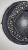Mit 70 cm Durchmesser und 19 cm Tiefe entfaltet das Werk eine starke räumliche Wirkung. Die konzentrischen Stoffkreise verstärken die Anziehungskraft zur Mitte, während die glänzenden Knöpfe wie kleine Sterne aufleuchten.