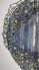 Mit einem Durchmesser von 60 cm und einer Tiefe von 21 cm wirkt das Werk präsent, ohne laut zu sein. Die vertikale Linienführung des Stoffes erinnert an Regen oder Wasserläufe, während das Drahtgeflecht wie eine leichte Welle darüber liegt.
